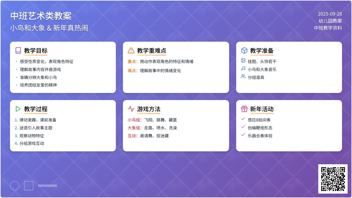 E、最后教师说”天黑了,小鸟和大象互相再见回家去了。”幼儿互相做再见的动作,回到自己的座位上。