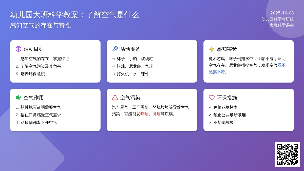 2、让幼儿初步了解空气污染的情况及其危害性。